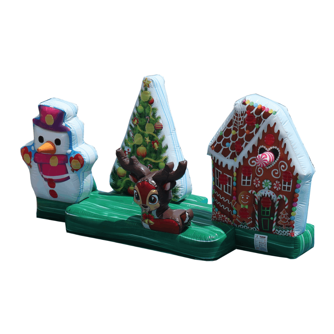 What an awsome way to capture your winter memories and anventures. Kids will have a blast and parents/grandparents will enjoy sharing such great pictures with family and friends!This Chrismas Village has several different style games from ring toss to Gumdrop Darts, this inflatable is not meant for jumping.